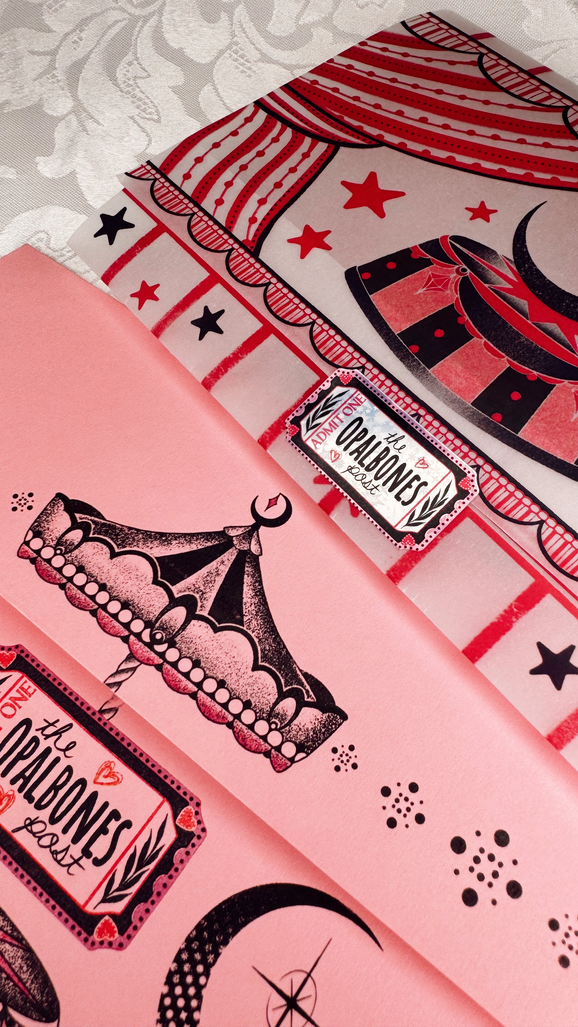 The Opalbones Post is a monthly mail club bringing art, smiles, and connection straight to your mail boxes. A little something to brighten your day- you deserve it! The club came to be through my love of printing, packaging and mailing- everything is hand designed, printed and packaged by me! I love how sending and receiving snail mail feels so personal (because it is) and helps you slow down for a moment in an otherwise fast world.